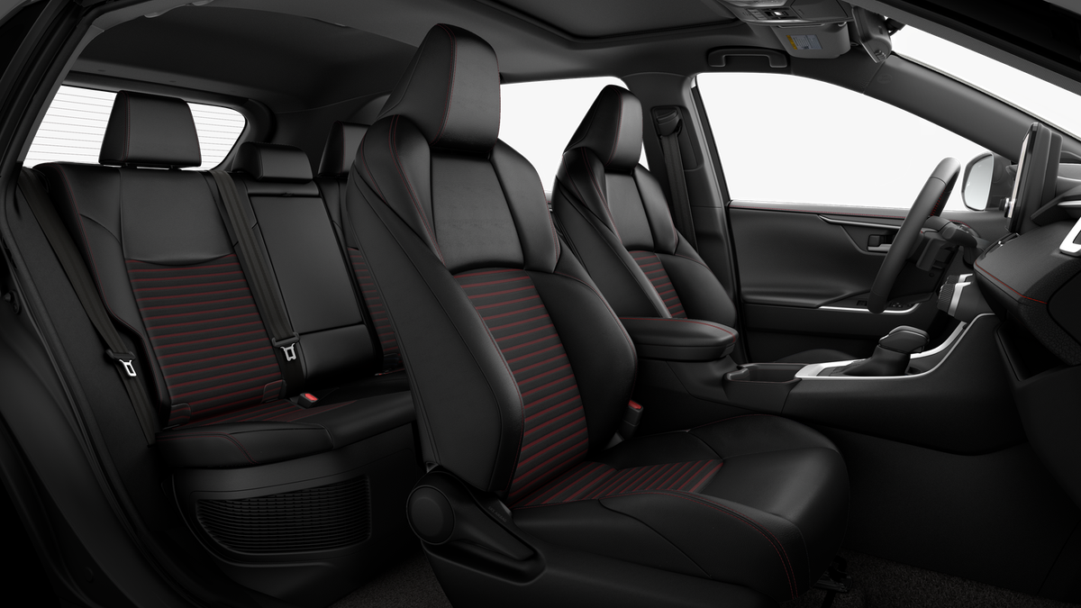 - SofTex®-trimmed seats with sporty red stitching and fabric seat inserts; heated front seats; 8-way power-adjustable front driver's seat with lumbar support and seatback pocket; 4-way adjustable front passenger seat with seatback pocket