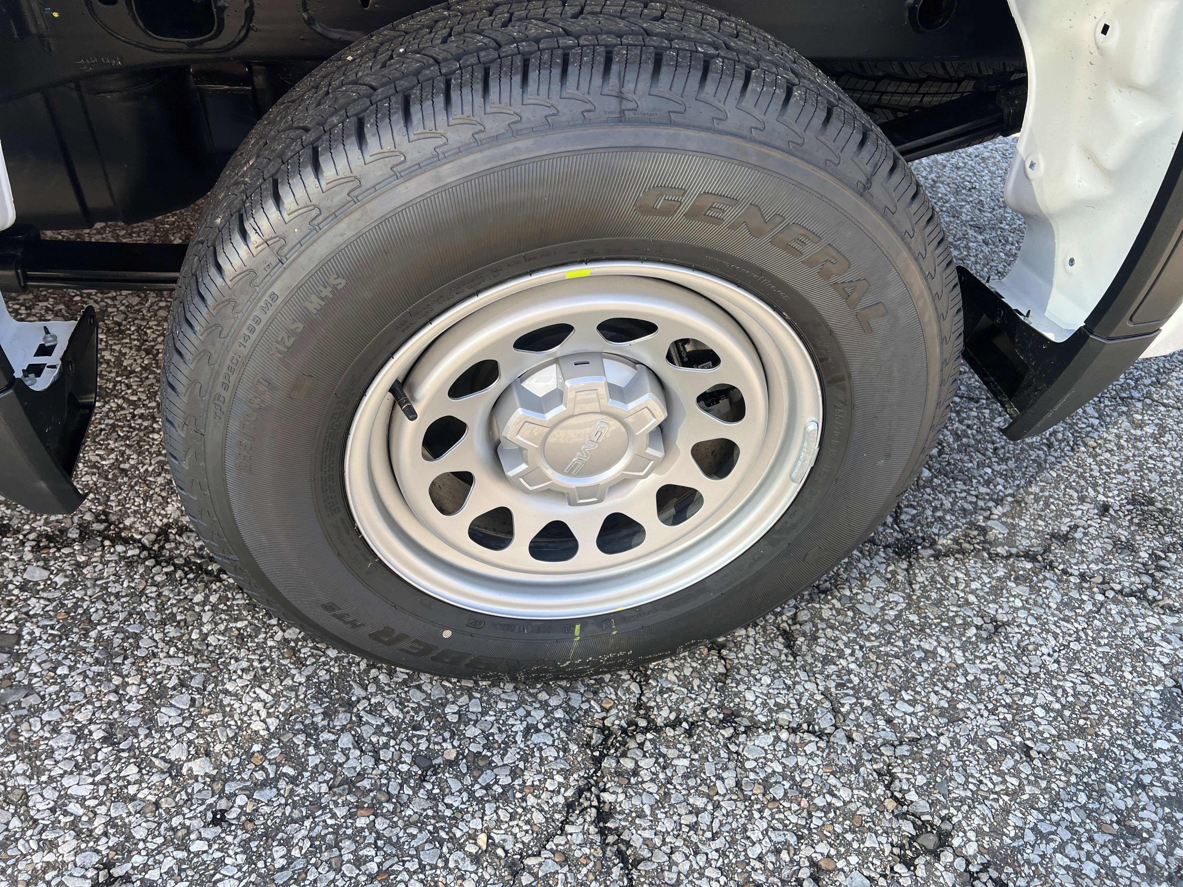 Wireless, Apple CarPlay / Wireless Android Auto, Windows, power rear, express down (Not available on Regular Cab models.), Windows, power front, drivers express up/down, Window, power front, passenger express down, Wi-Fi Hotspot capable (Terms and limitations apply. See onstar.com or dealer for details.), Wheels, 17" x 8" (43.2 cm x 20.3 cm) painted steel, Silver, Wheel, 17" x 8" (43.2 cm x 20.3 cm) full-size, steel spare, USB Ports, 2, Charge/Data ports located on instrument panel, Transmission, 8-speed automatic, (Column shifter) electronically controlled with overdrive and tow/haul mode. Includes Cruise Grade Braking and Powertrain Grade Braking (Standard and only available with (L3B) TurboMax engine.), Transfer case, single speed, electronic Autotrac with push button control (4WD models only), Tires, 255/70R17 all-season, blackwall, Tire, spare 255/70R17 all-season, blackwall (Included with (QBN) 255/70R17 all-season, blackwall tires.), Tire Pressure Monitoring System, auto learn includes Tire Fill Alert (does not apply to spare tire), Tire carrier lock keyed cylinder lock that utilizes same key as ignition and door (Deleted with (ZW9) pickup bed delete.), Taillamps, LED LED signature taillight and Fade-on/Fade-off animation, incandescent stop, turn and reverse light, Tailgate, standard (Deleted with (ZW9) pickup bed delete.), Tailgate, locking utilizes same key as ignition and door (Deleted with (ZW9) pickup bed delete or (QK2) GMC MultiPro Tailgate.), Tailgate, gate function manual, no lift assist (Deleted with (ZW9) pickup bed delete or (QK2) GMC MultiPro Tailgate.), Tailgate and bed rail protection caps, top, Steering, Electric Power Steering (EPS) assist, rack-and-pinion.