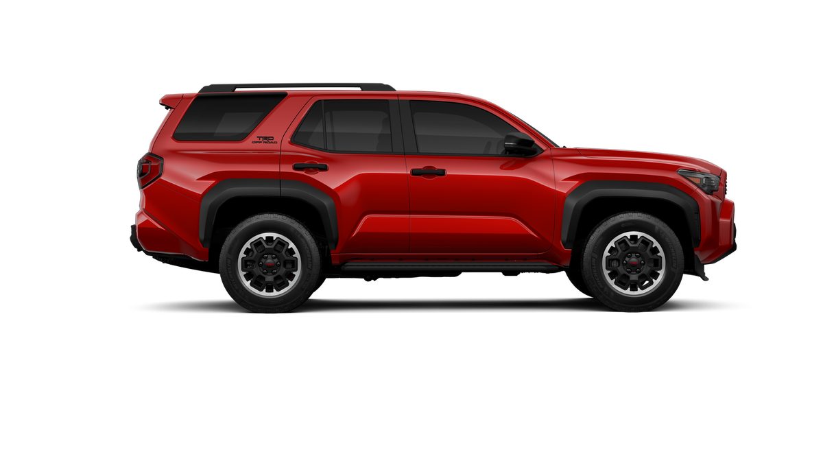 - Black honeycomb-style grille, mirror caps, door handles and overfenders; color-keyed rear spoiler; black "TRD OFF ROAD" and "4RUNNER" badges