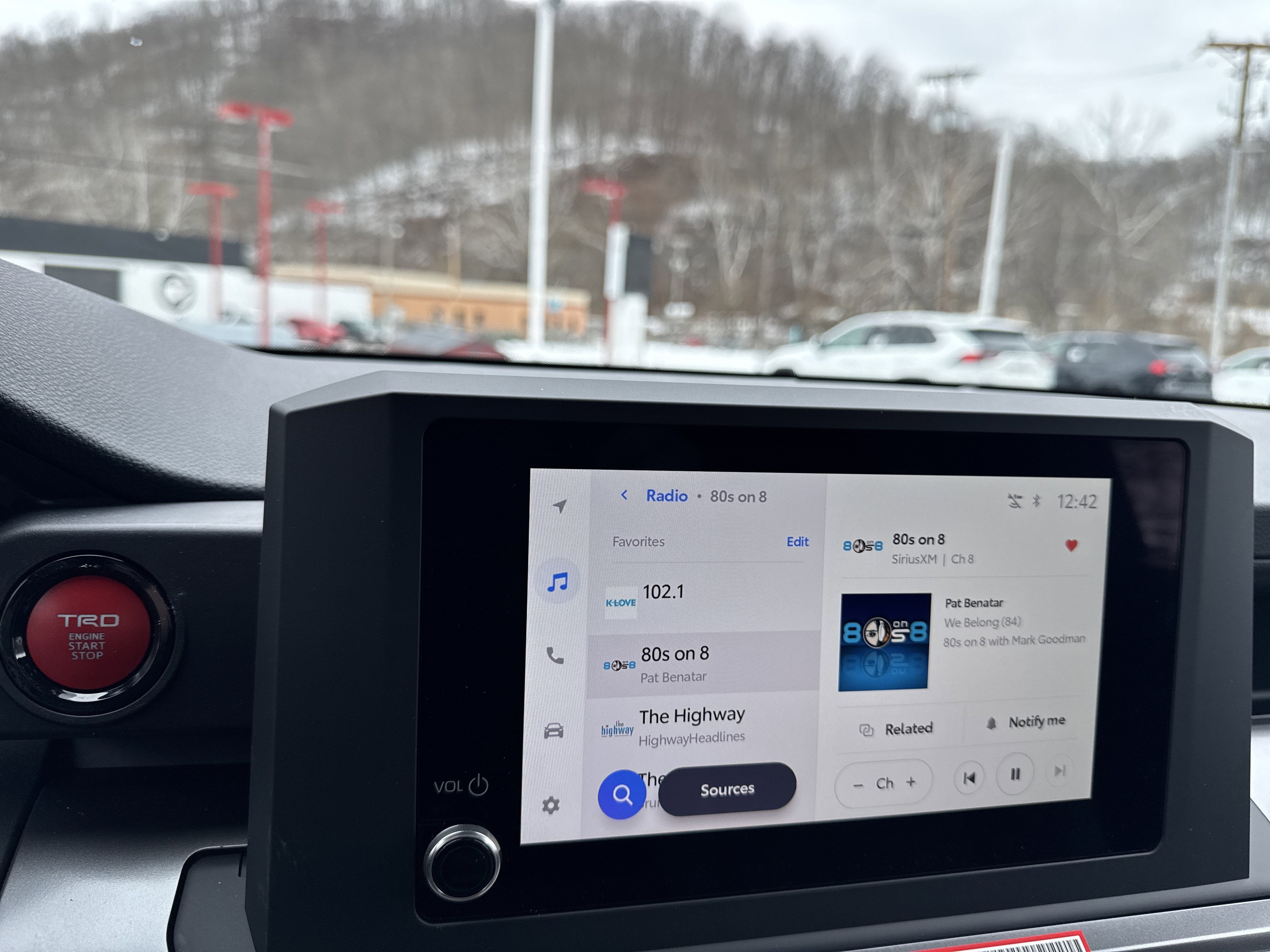 - 8-in. Toyota Audio Multimedia display with 6-speaker audio system, wireless Apple CarPlay® & Android Auto™ compatibility, SiriusXM® 3-month trial subscription. See toyota.com/connected-services for details.