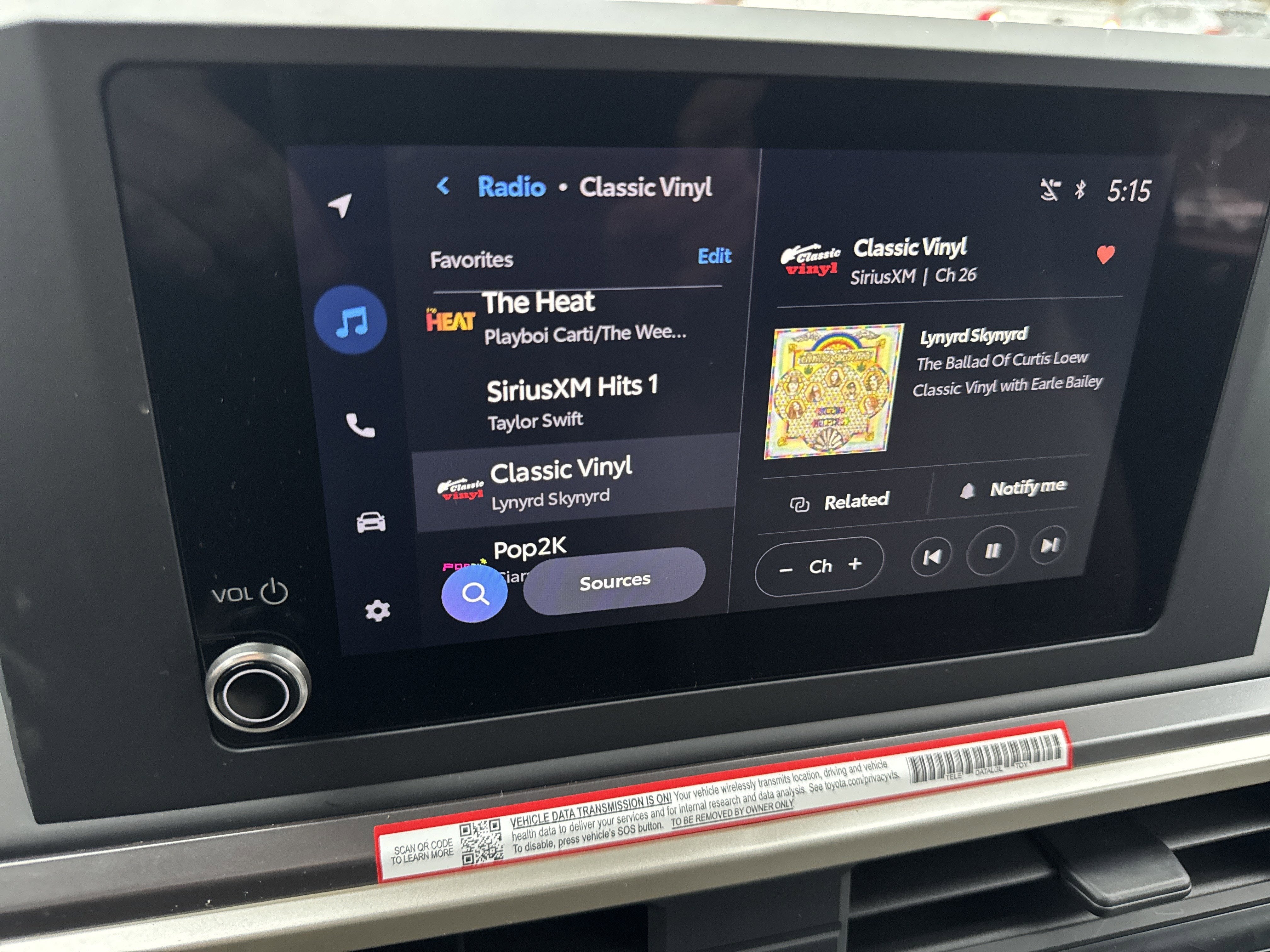 - 8-in. Toyota Audio Multimedia display with 6-speaker audio system, wireless Apple CarPlay® & Android Auto™ compatibility, SiriusXM® 3-month trial subscription. See toyota.com/connected-services for details.